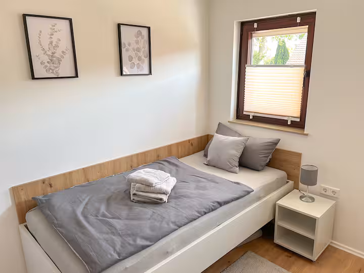 Ob Monteurwohnung in Espelkamp, Ferienhaus oder Geschäftsreise: Zwei Etagen bieten viel Raum – oben drei Schlafzimmer und ein Bad mit Dusche, unten voll ausgestattete Küche, Esszimmer, Wohnzimmer, Gäste-WC und Flur. Bettwäsche und Handtücher sind inklusive.