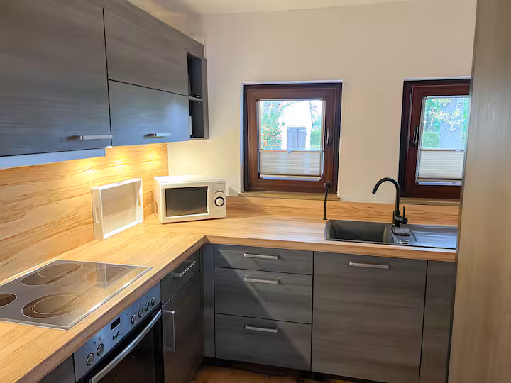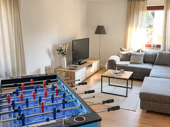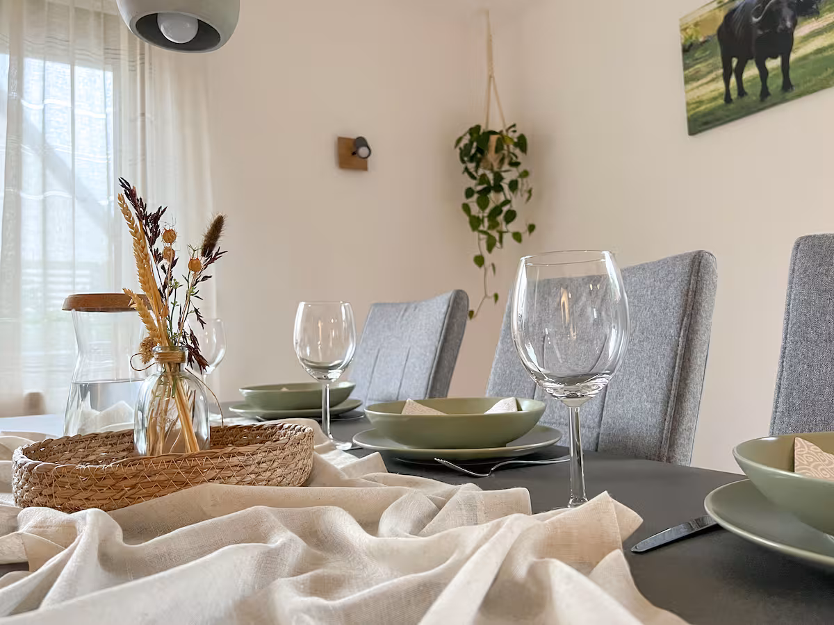Wir haben das Haus wie unser eigenes Zuhause eingerichtet: gemütlich, stilvoll und mit Liebe zum Detail. Ankommen, wohlfühlen – es soll euch an nichts fehlen. Für Familien stellen wir auf Wunsch ein Extrabett und einen Hochstuhl für Kinder bereit, damit auch die Kleinen gut versorgt sind.